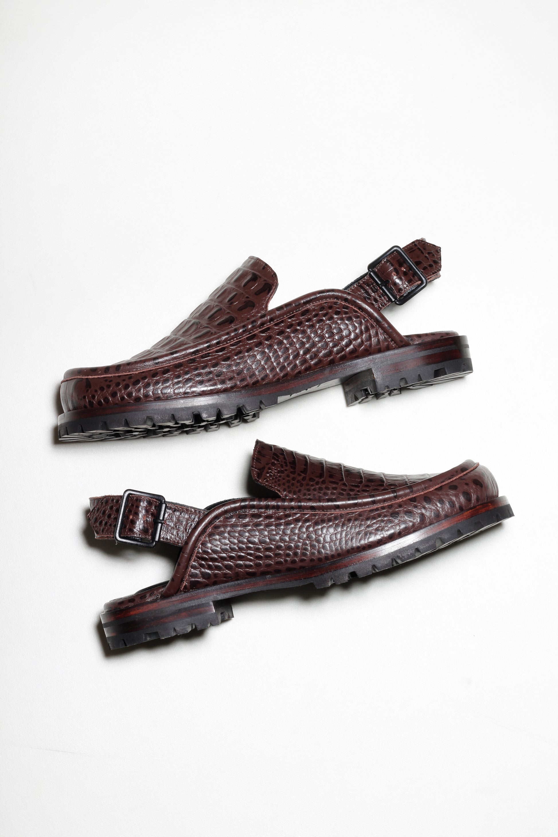 Dominic is a slingback loafer shoe made of croco patterned leather. It features a square toe and a structured upper. Timeless, striking, and extremely comfortable. The leather lining and rubber tractor sole provide greater stability while walking. The back opening features an adjustable buckle. The soft insole and sturdy sole ensure long-lasting comfort, making it ideal for creating urban looks with personality and a contemporary feel.