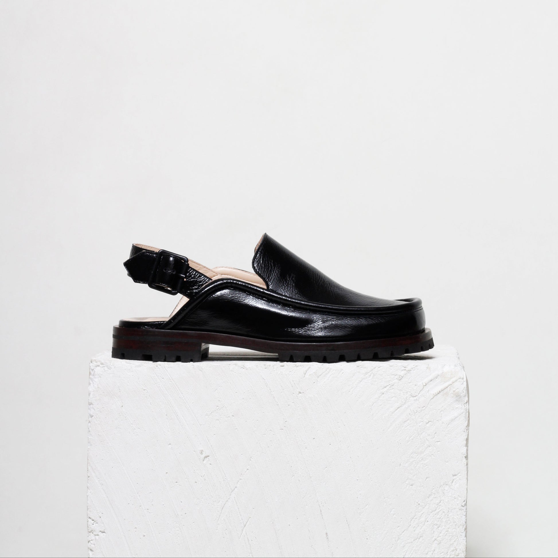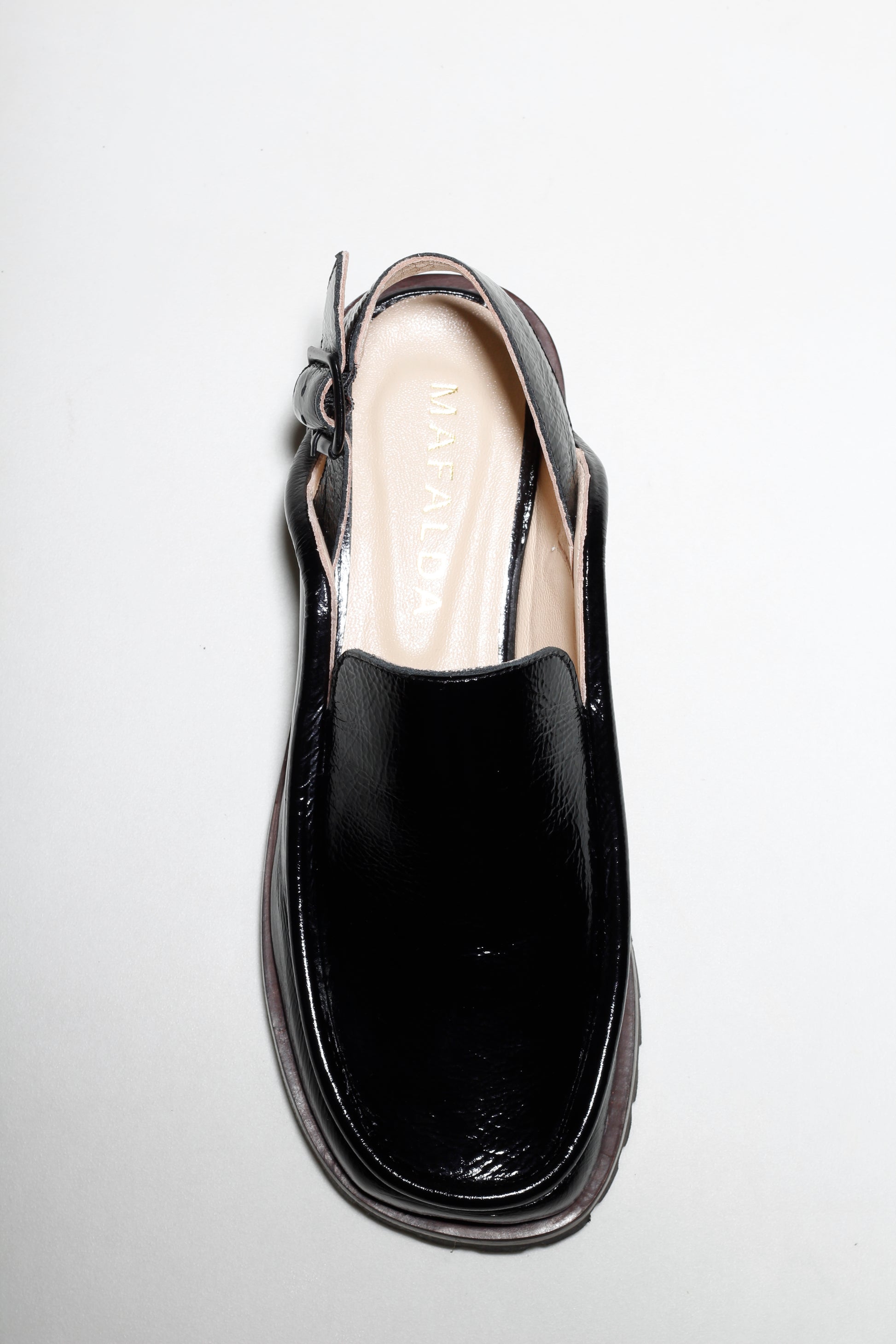 Dominic is a slingback loafer shoe made of croco patterned leather. It features a square toe and a structured upper. Timeless, striking, and extremely comfortable. The leather lining and rubber tractor sole provide greater stability while walking. The back opening features an adjustable buckle. The soft insole and sturdy sole ensure long-lasting comfort, making it ideal for creating urban looks with personality and a contemporary feel.