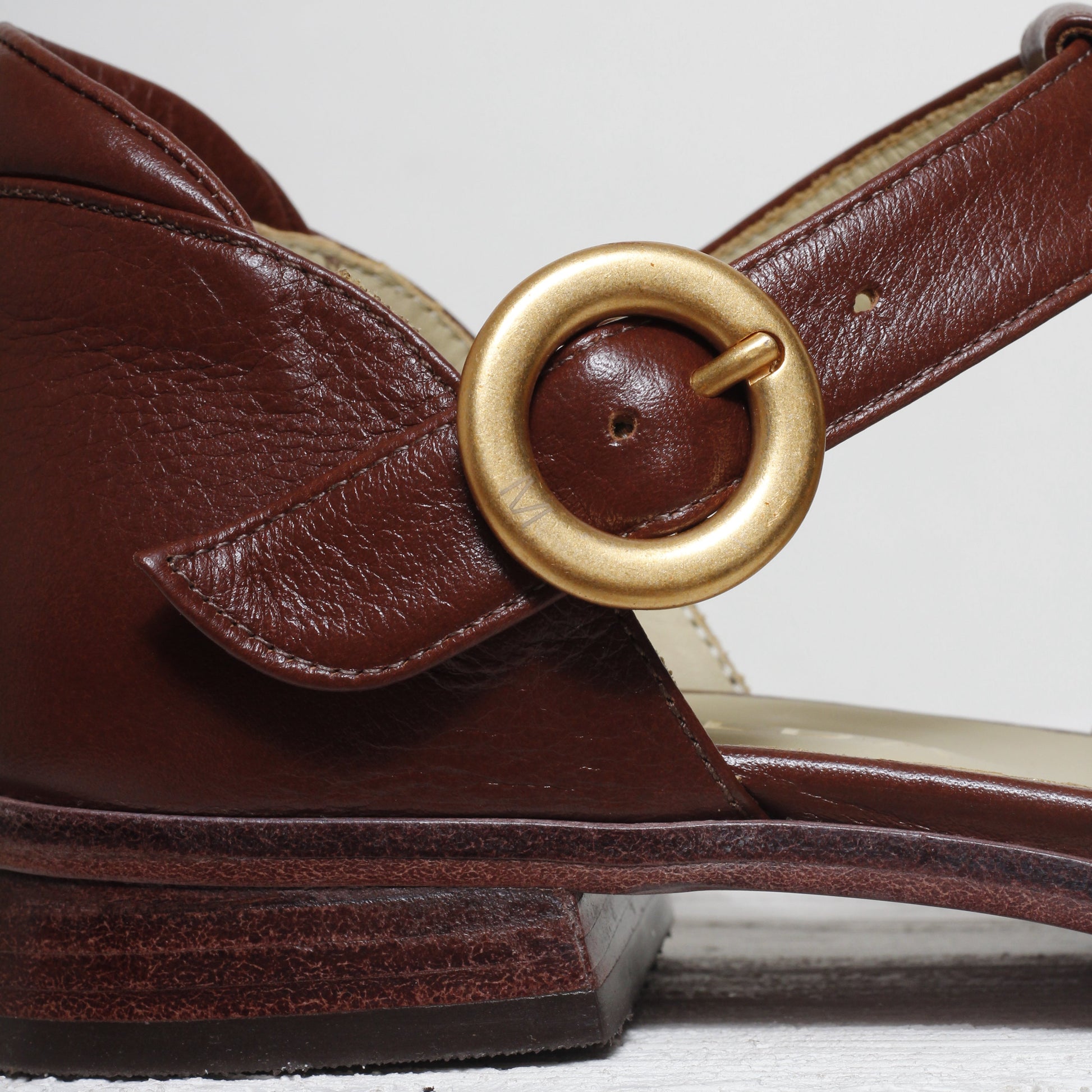 Introducing the Savana Coffee Brown Fisherman Sandals, a sleek and stylish choice for any occasion. Crafted from genuine, smooth mint-green leather, these sandals feature gorgeous brushed gold round buckles and a woven upper for a touch of elegance. Complete with pointy toes for a unique twist.